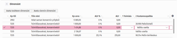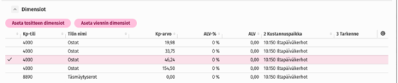 Tarkasta kustannuspaikka.