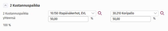 Kustannuspaikkana on oletuksena kotikustannuspaikka, jos olet tehnyt työtä jollekin muulle kustannuspaikalle tulee se muuttaa.