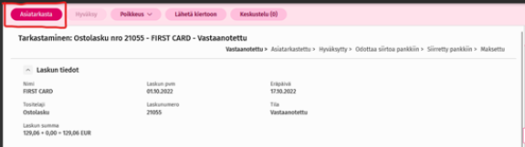 5. Kustannuspaikan tarkastaminen
