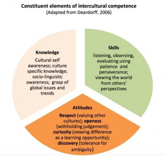 - Knowledge: self-awareness, knowledge of other cultures and current global issues, and socio-linguistic awareness