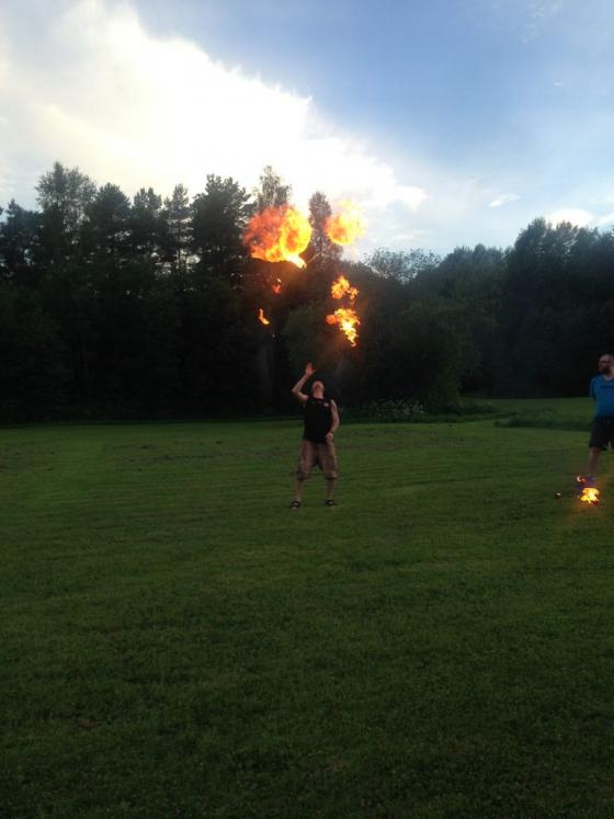 3.  päivä     Keskiviikko alkoi sateella, joten keksimme kivaa sisäpuuhaa. Lapset maskeerattiin evakuointileikkiä varten, jossa kokeilimme kuinka saamme leirin kuljetettua yhteen paikkaan jos joku on sokea, joku ilman käsiä ja joku joka ei saa liikkua jos valot on päällä. Iltapäivällä aurinko näyttäytyi jälleen, jolloin puimme sumopuvut päälle ja pidimme turnajaiset.