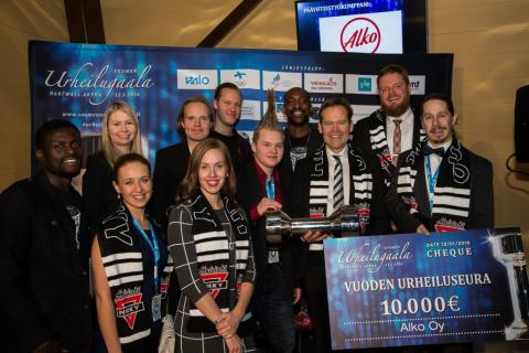 Helsingin NMKY palkittiin 12.1.2016 Suomen urheilugaalassa vuoden urheiluseurana. Päätöksen valinnasta teki 100 henkinen raati, joka koostui erilaisista urheiluvaikuttajista. Tänä vuonna valintakriteerinä oli: ”Urheiluseura, jolla on kyky laajentaa verkostoja, luoda kontakteja ja kehittää yhteistyötä myös muiden tahojen kanssa unohtamatta seuran roolia nuorten liikuttajana ja kasvattajana.” Helsingin NMKY palkittiin tittelin ja Uuno-pokaalin lisäksi Alkon lahjoittamalla 10 000 euron stipendillä. Palkinnon ojensi pääsihteeri Timo Laulajalle ja lajipäällikkö Henrik Pulkkiselle HNMKY:n oma kasvatti Hanno Möttölä.